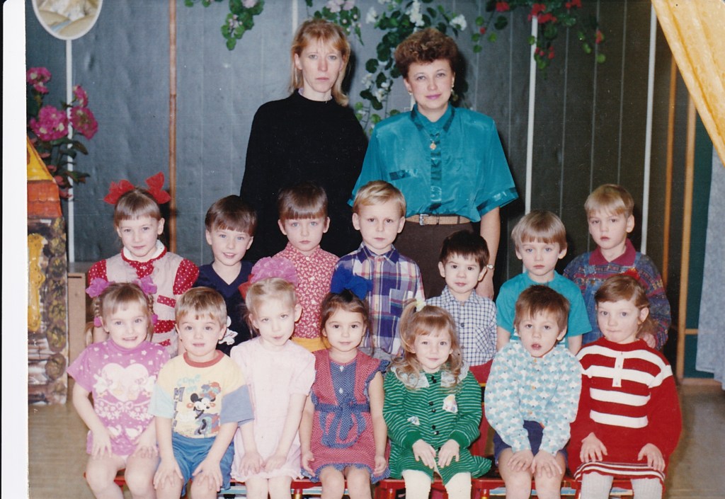 Anna and Vlad are first from the left in the first row, and their later best friend Kolya is a second from right in the upper row. Vlad and Anna just turned three, Kolya is almost a year older. Interestingly, I remember all of the kids, their characters, but I do not remember any other names.
