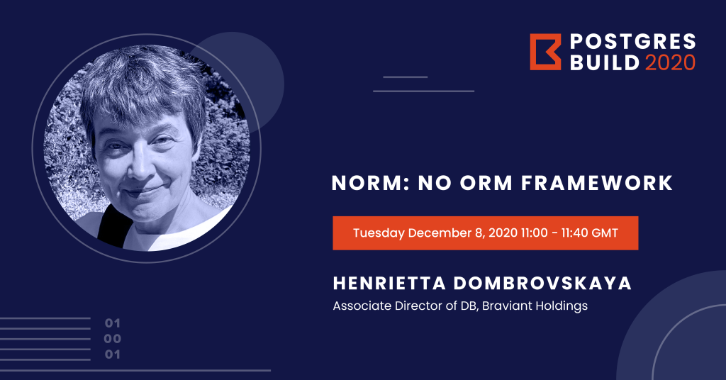 If I could only imagine that the preparation for my talk at the PostgresBuild conference would take almost two days, I would never submit my talk proposal! A fun fact is that I invested a lot of time to submit a proposal for my bitemporal short tutorial, which was such a success at October Chicago PUG, and it was my last-minute decision to add one more proposal – for the NORM talk.