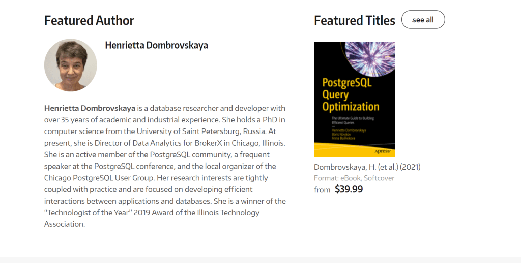 I am a featured database author for the month of July on Apress – check it out here!