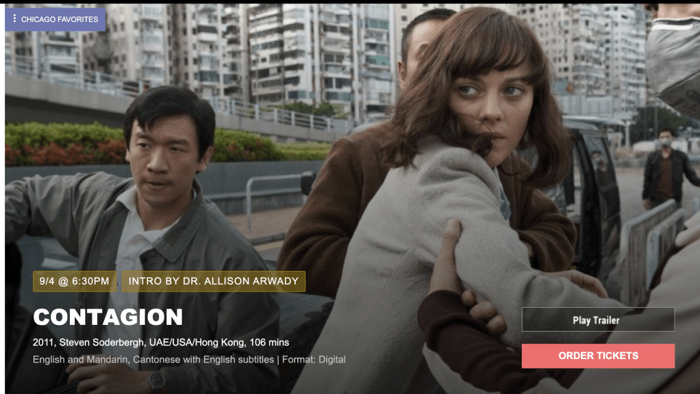 Since the Siskel Center reopening in August, they screen so many interesting films that I want to be there every other day! One of the series is called Chicago Favorites, and last Saturday, they screened “Contagion” with special guest Dr. Allison Arwady. It was a little bit surreal to see her live after seen her on-screen almost every day for the past 18 months :), and the conversation was exceptionally interesting. At the time when this movie was filmed, she worked as a CDC Epidemic Intelligence Service Officer, just as Kate Winslet’s character in the movie.
