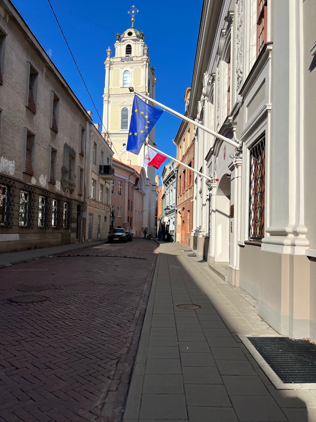 From the moment we landed at vilnius Airport, we realized who personally Lithuania takes the war in Ukraine. We hardly saw a Lithuanina flag without Ukrainian flag by it’s side, and lots of Ukrainian flags solo. There are lots of Ukrainian refugees in the city, I mention it know because there was a large group in the Gediminas Tower when we visited. As everywhere, they are mostly women with children. When we bought the tickets to the museum, we could choose a visitor sticker either of Lithuania red color, or yellow and blue.