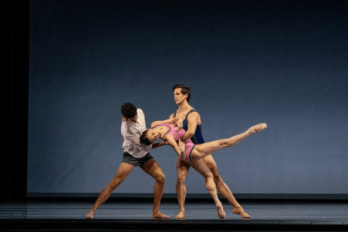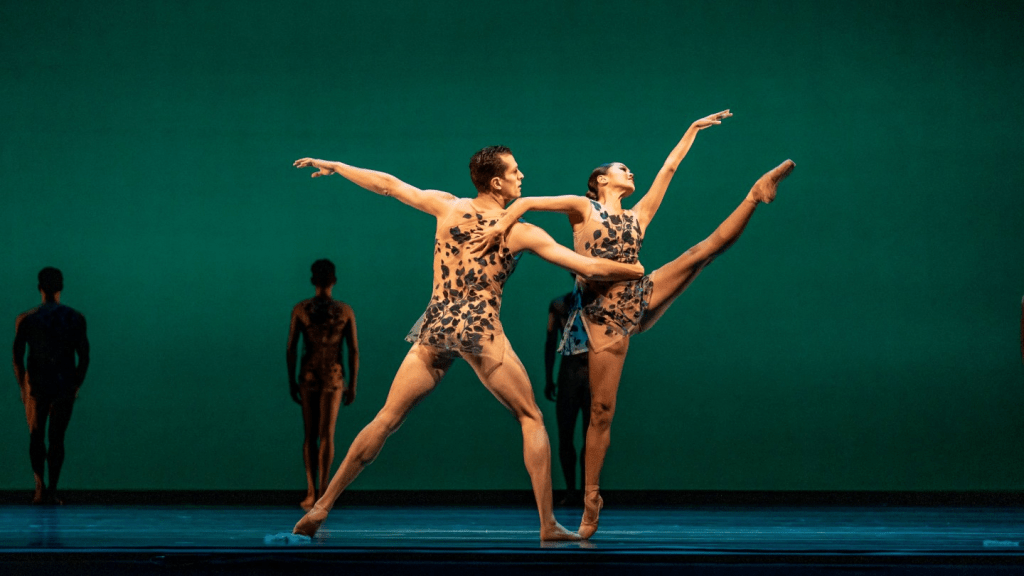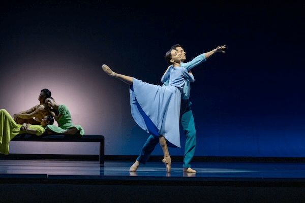 Under the Trees’ Voices. According to the Joffrey website, it “examines the persistence of community and connection in the age of distance and isolation. Set to Bosso’s Symphony No. 2, Blanc’s choreography arose from his observations of the nuances of people’s temperaments during the spring of 2020 as the weather became warmer and the chill of pandemic restrictions thawed. In four distinct sections, Under the Trees’ Voices imagines a future of hope and unity, reminding us that we are better together than alone”.