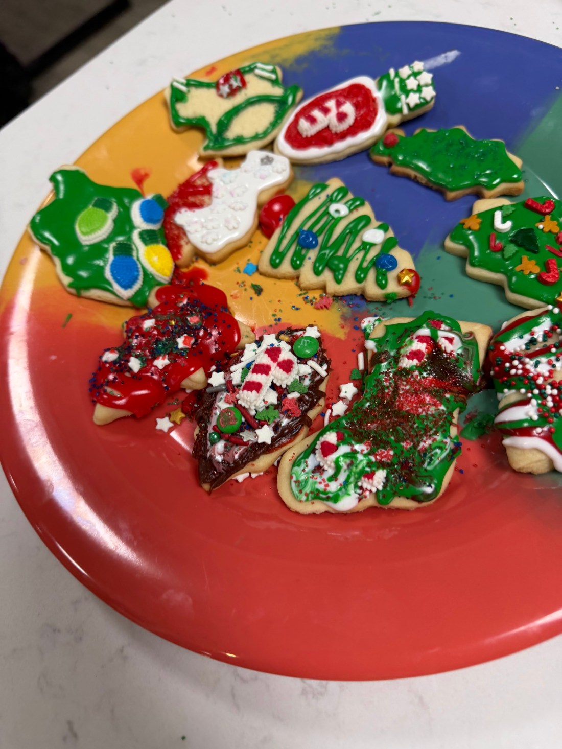 On Tuesday, I took a whole box of non-decorated cookies, along with several tubes of icing and multiple containers of sprinkles, to the ODS for our traditional cookie-decorating session.