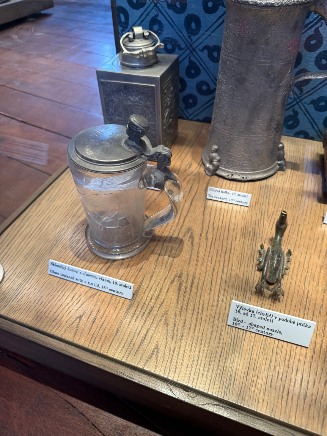 Traces of 14th century frescos on the wallsA tw0-key lock15th-century iron storage door“A reminder to be uncorruptable” 🙂 A picture of King Wenceslaus II giving the royal mining code Ius regale montanorum to the miners. This was a legal document that specified all administrative as well as technical terms and conditions necessary for the operation of mines.The Bible of Martin Tishnov, 1489Hand-written Hymn Book, 1470-1530, both Czech and Latin songsThe view from the museum balcony