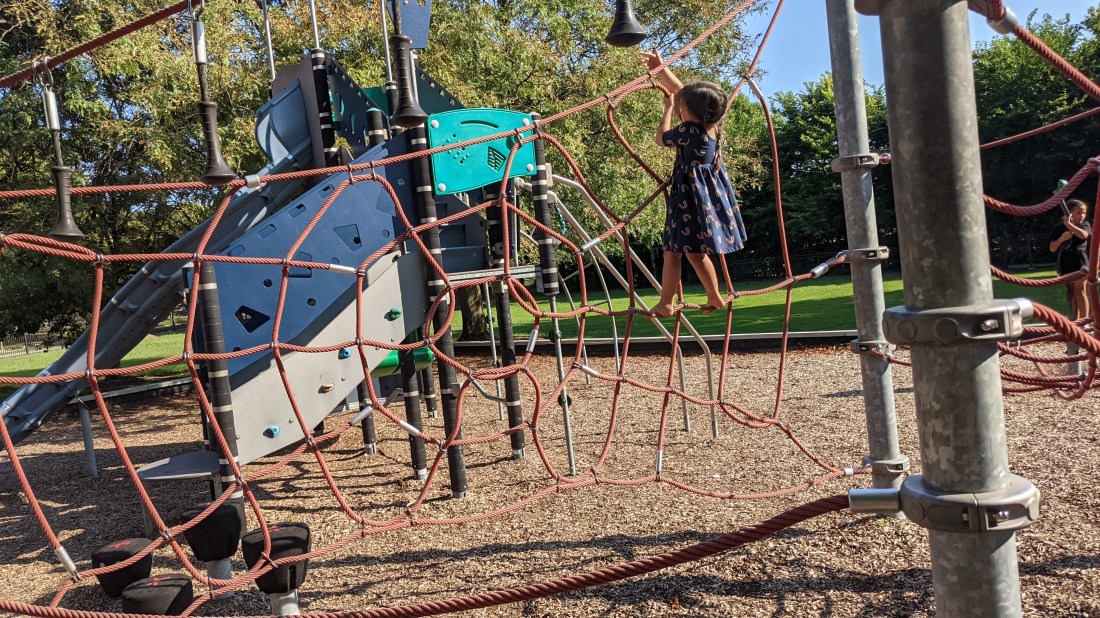Anna brought her cargo bike with her (she ended up driving a truck because of that), and although driving a truck in the city is not the most enjoyable activity, the presence of a cargo bike made a huge difference! We could go anywhere on bikes! Both Sunday and Monday mornings, we would head to the Lake Front Trail to explore the playgrounds – thank you, Chicago Park District!