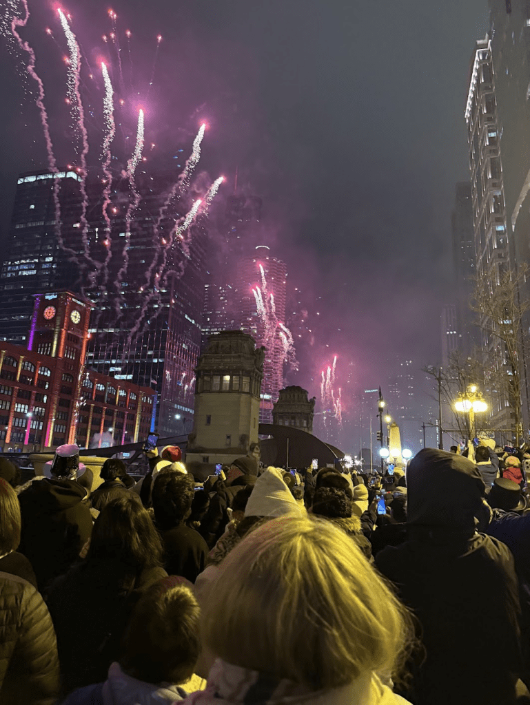 This New Year’s Eve, the Metra schedule was less convenient than last year; the fireworks were at least twice shorted, and Mayor Brandon Jonson didn’t give a speech before the countdown. But the weather was better, and there were way more people out!