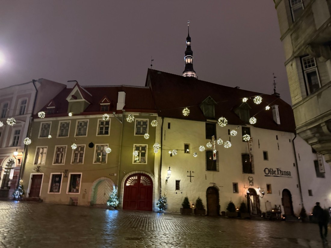 I took the outside photo the next day, at daylightMoose meatballsApple and raisin cinnamon crepesSorbet boatThe Holland-style Townhall photoContinue reading “Back To Tallinn”→