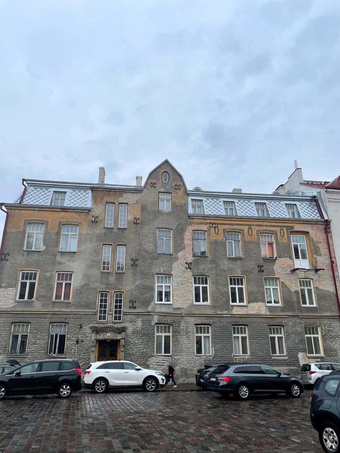 We had about three and a half hours in Tallinn. In contrast to our visit in October, the weather was sunny, and I was so glad to have one more opportunity to see the Old Town. On our way there, we passed this building: