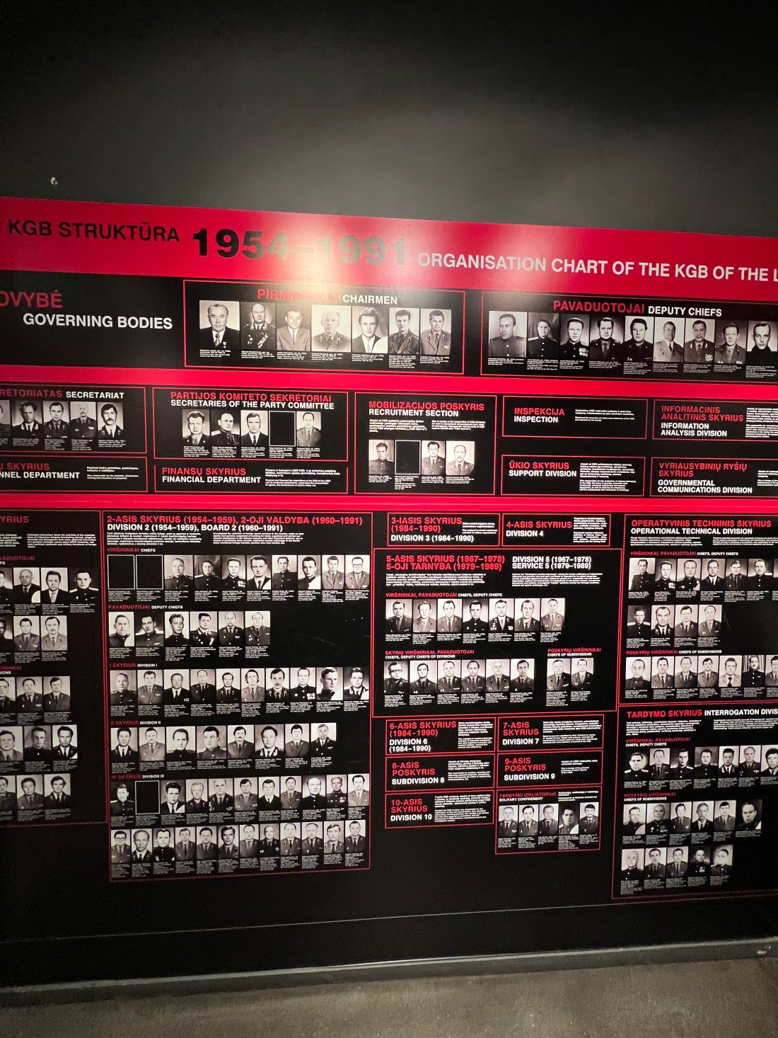 And one of the most impressive parts of the exhibit was the room where they presented the complete organizational chart of the Lithuanian KGB organization, with names and photographs! That’s where I thought – we should have had this for each KGB organization on the territory of the former Soviet Union! Then, maybe…Â